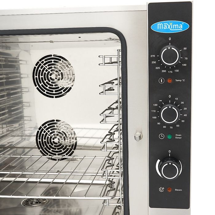 Sellel kombiauruahjul on võimsad roostevabast terasest kütteelemendid, mis tagavad täieliku ja tõhusa soojusjaotuse, et liha ja kala küpseksid ühtlaselt. n Lisaks on kombiauruahjul kaks pöördfunktsiooniga ventilaatorit ja topelttermiline klaas. Uks on väga kergesti reguleeritav ja ukse tihend on valmistatud toiduks sobivast ränist. Sisemine valgusti võimaldab hõlpsasti näha, kui kaugel olete küpsetusprotsessis. Sellel seadmel on vee sisselaskeava koos aurutootmise klapiga, samuti vee väljavool. See on täiesti kohandatav masin, millel on lihtsad analoogjuhtimispuldid. On nupp, millega saab reguleerida taimerit, temperatuurivahemikku ja kasutatud aurukogust. On ka temperatuuri märgutuli, mis näitab, kas kombiauruahju on saavutanud seatud temperatuuri. Viimane nupp on aurureguleerimise seadmiseks mõeldud nuppu.